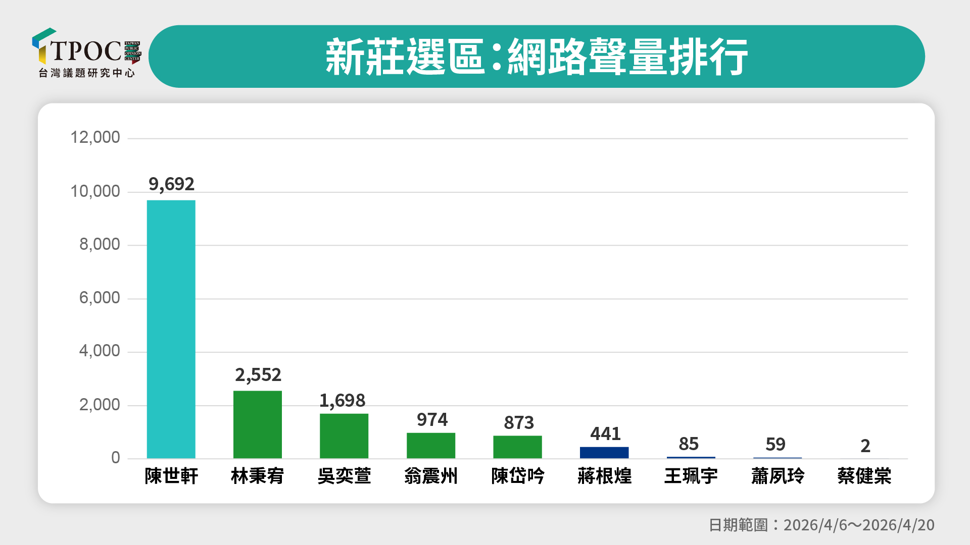 2026大選》新莊選區輿情觀察 「他」聲量超越其他候選人總和