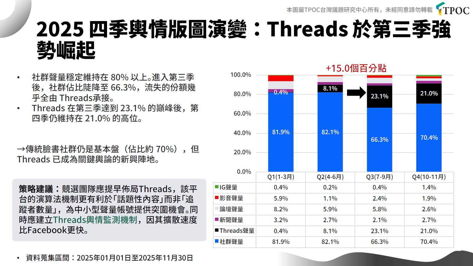 2025四季輿情版圖演變:Threads於第三季強勢崛起