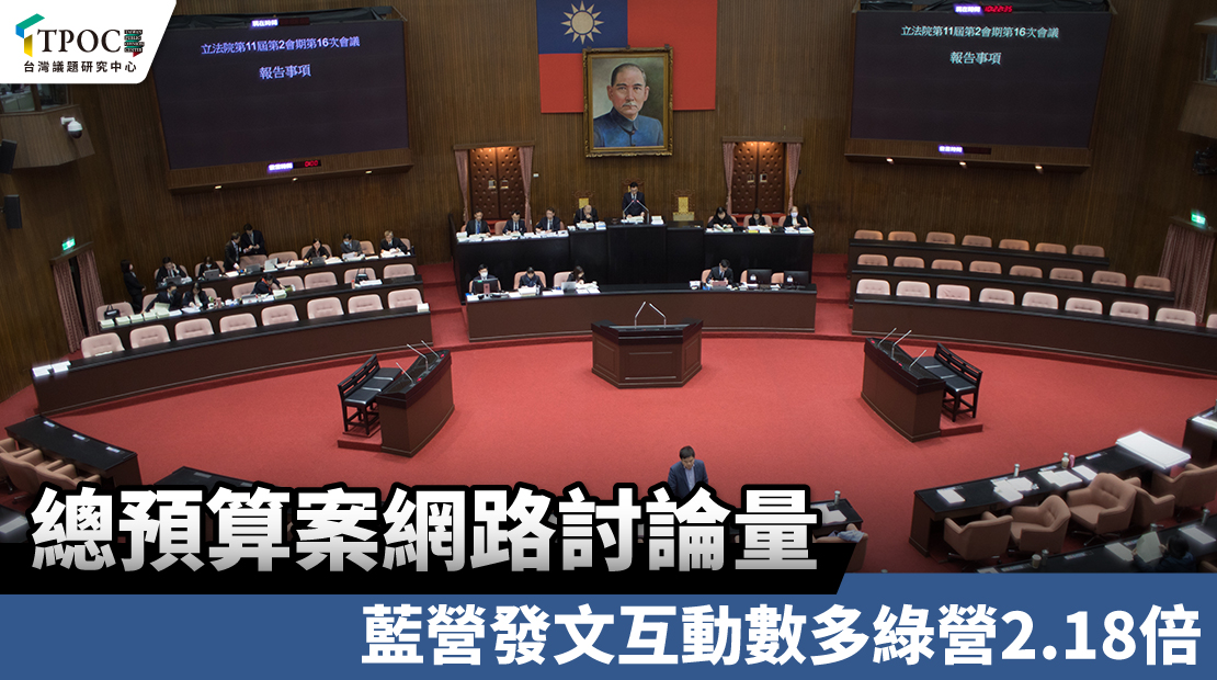 總預算案網路討論量 藍營發文互動數多綠營2.18倍
